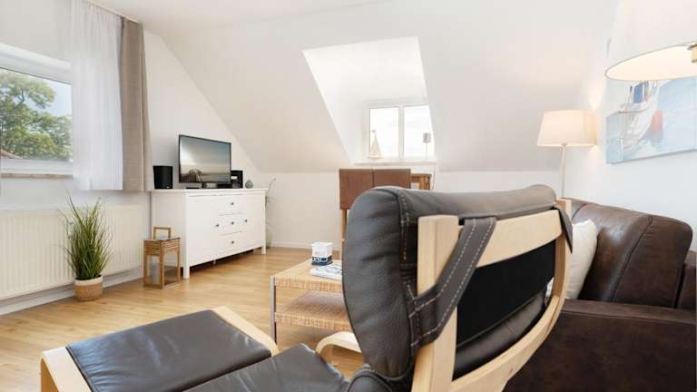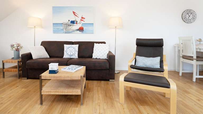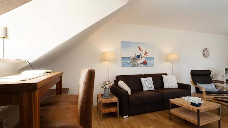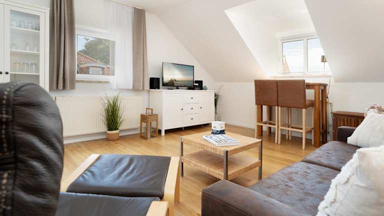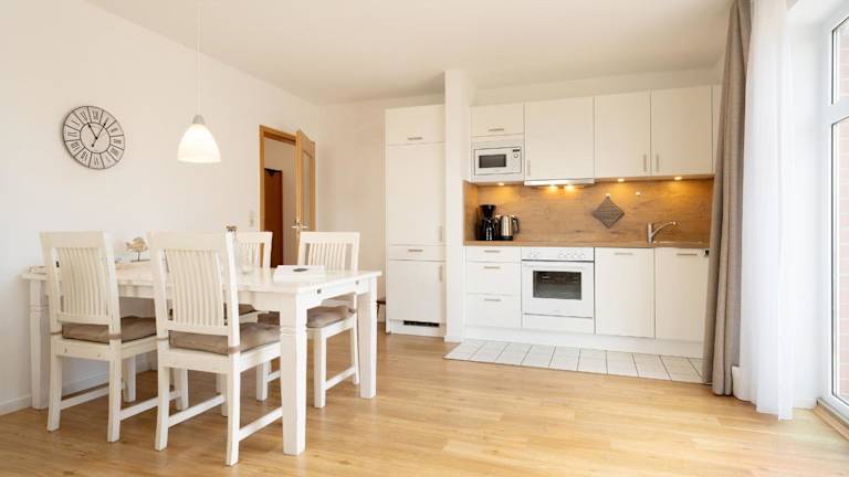 Die Ferienwohnung verfügt über einen Balkon mit Meerblick und bietet Platz für bis zu zwei Personen. Sie beinhaltet ein Schlafzimmer, ein Wohnzimmer mit TV, eine gut ausgestattete Küche mit Kühlschrank und Geschirrspüler sowie ein Badezimmer mit Dusche.