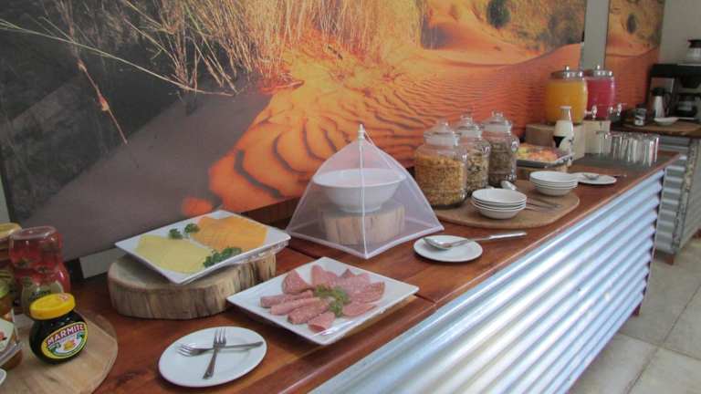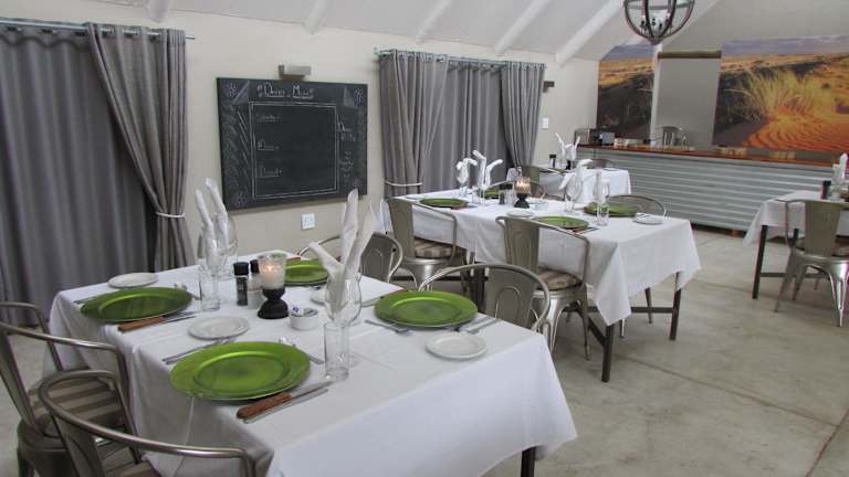Die Kalahari Game Lodge verfügt über ein eigenes Restaurant, in dem die Gäste köstliche Mahlzeiten genießen können. Das Restaurant bietet eine Vielzahl von Gerichten, darunter lokale Spezialitäten und internationale Küche. Die Gäste können ihre Mahlzeiten im Restaurant oder auf der Terrasse mit Blick auf die umliegende Landschaft einnehmen.