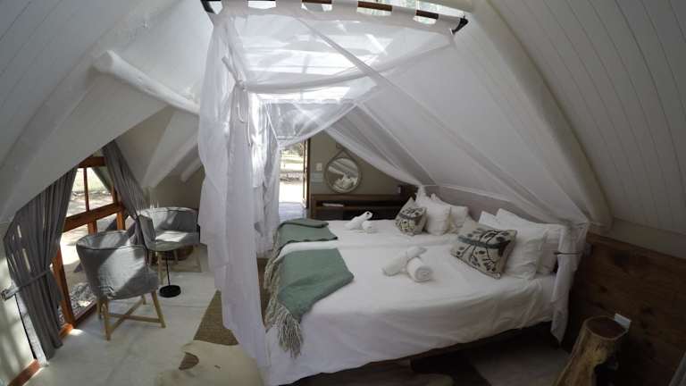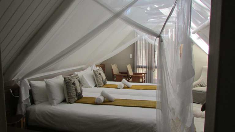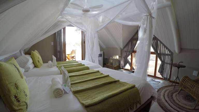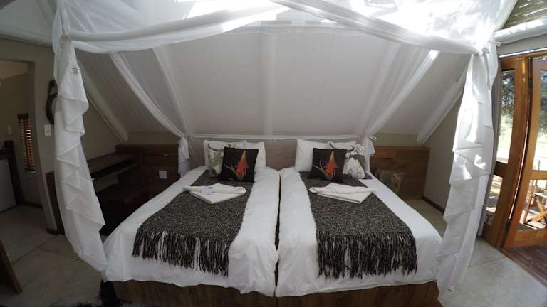 Die Chalets der Kalahari Game Lodge sind komfortabel und gut ausgestattet. Jedes Chalet verfügt über eine private Terrasse, auf der die Gäste die herrliche Aussicht auf die umliegende Landschaft genießen können. Zur Ausstattung gehören auch ein kleiner Kühlschrank, ein Safe und Tee- und Kaffeezubehör. Jedes Chalet verfügt über ein eigenes Badezimmer mit Pflegeprodukten, um den Gästen einen angenehmen Aufenthalt zu ermöglichen.