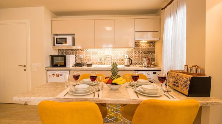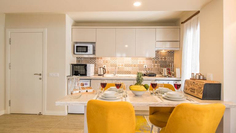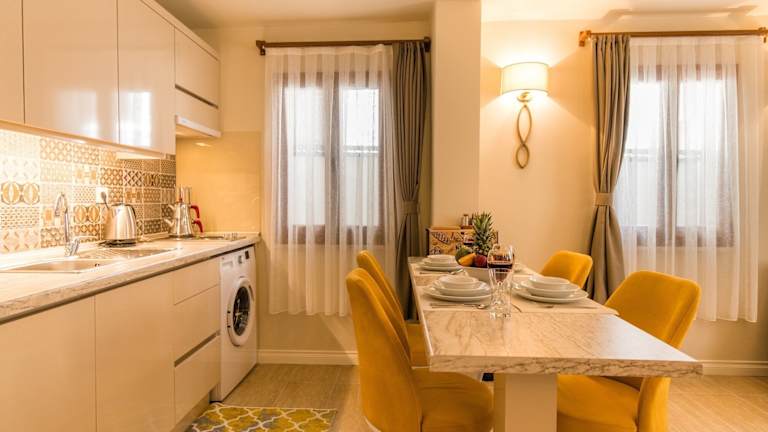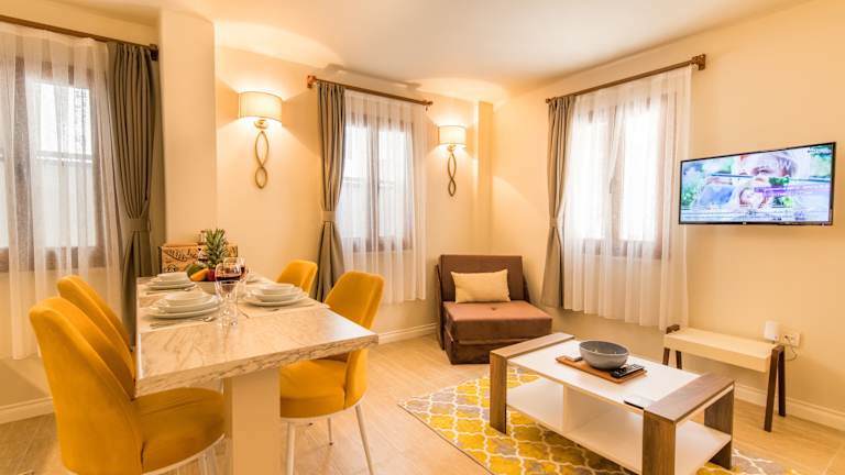 Die Zimmer sind mit einem Flachbild-TV, einer voll ausgestatteten Küche mit Kühlschrank, Mikrowelle und Herdplatte sowie einem eigenen Badezimmer mit Dusche und Haartrockner ausgestattet. Weitere Annehmlichkeiten umfassen einen Wasserkocher und Klimaanlage. Es wird darauf geachtet, dass die Bettwäsche, Handtücher und Wäsche gemäß den Richtlinien der örtlichen Behörden gewaschen werden.