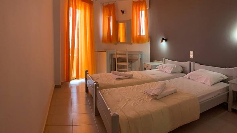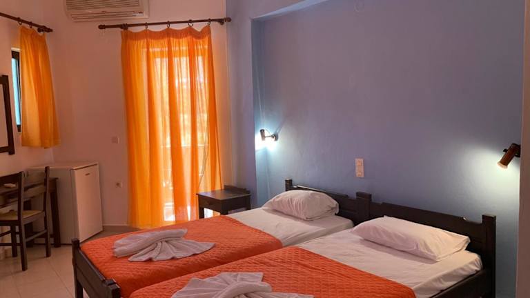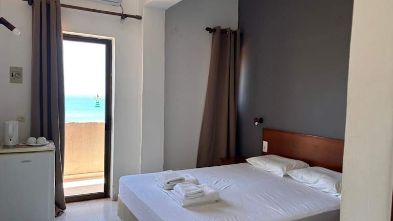 Die Zimmer im Kalami sind komfortabel und klimatisiert. Sie verfügen über einen eigenen Balkon, von dem aus Sie die herrliche Aussicht auf das Meer genießen können. Jedes Zimmer ist mit einem Kühlschrank und einem eigenen Bad mit Dusche ausgestattet. Einige Unterkünfte verfügen auch über eine Küchenzeile mit Ess- und Sitzbereich.