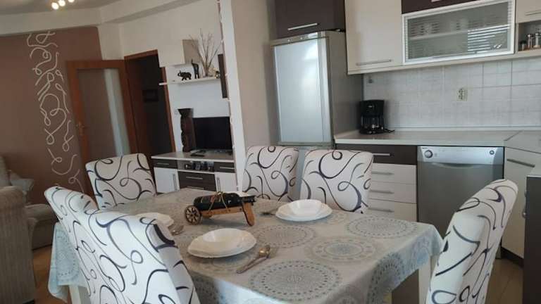 Das Kalan Apartment liegt in einer malerischen Umgebung in Ohrid und bietet einen atemberaubenden Blick auf die umliegenden Berge. Die Strände Potpesh und Saraiste sind nur wenige Kilometer entfernt und laden zum Sonnenbaden und Schwimmen ein. Die frühchristliche Basilika, ein UNESCO-Weltkulturerbe, ist ebenfalls in der Nähe und bietet einen Einblick in die reiche Geschichte der Region. Der Hafen von Ohrid ist ein beliebter Ort, um einen Spaziergang entlang des Sees zu machen und das lebendige Treiben zu beobachten. Der Flughafen Ohrid ist bequem mit dem Auto oder Taxi in etwa 10 Minuten erreichbar.