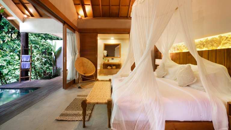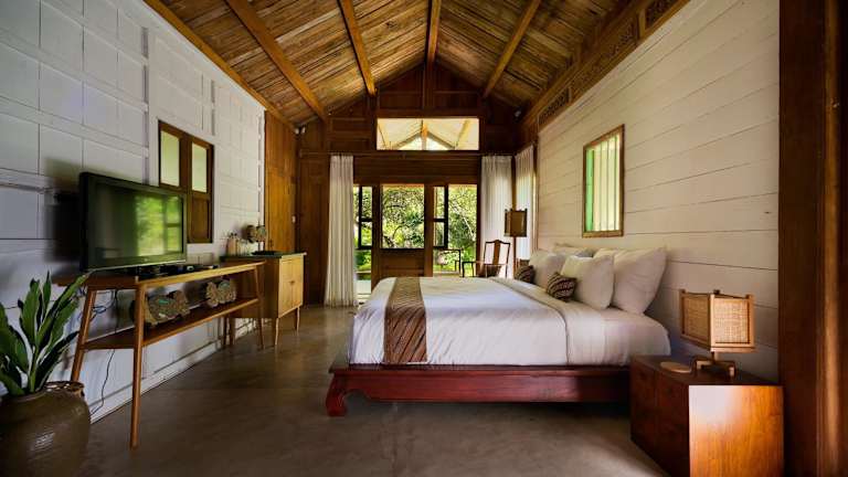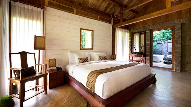 Das Kalapa Boutique Resort & Yoga bietet geräumige und elegant eingerichtete Zimmer und Villen, die einen herrlichen Blick auf den Fluss und den Dschungel bieten. Die Unterkünfte sind im traditionellen javanesischen Stil gestaltet und verfügen über eine luxuriöse Holzeinrichtung im Landhausstil. Jeder Raum ist mit modernen Annehmlichkeiten wie einem Flachbild-Kabel-TV, kostenlosem WLAN und einem eigenen Safe ausgestattet. Die Badezimmer sind geräumig und verfügen über eine Badewanne sowie einen kostenlosen, vollständigen Satz Pflegeprodukte.