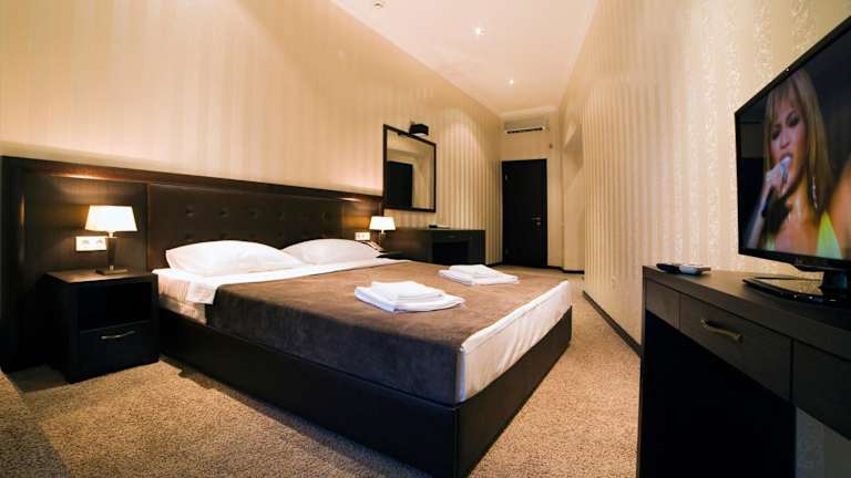 Die Zimmer im Kalasi Hotel sind stilvoll eingerichtet und bieten Ihnen eine gemütliche Atmosphäre für Ihren Aufenthalt. Alle Zimmer sind klimatisiert und verfügen über einen Flachbild-TV für Ihre Unterhaltung. Die Badezimmer sind modern und verfügen über eine Dusche, einen Haartrockner und kostenlose Pflegeprodukte. Genießen Sie den Komfort und die Annehmlichkeiten, die Ihnen während Ihres Aufenthalts zur Verfügung stehen.