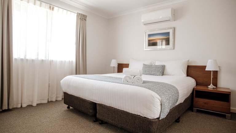 Die 38 Zimmer des Resorts bieten eine komfortable Ausstattung mit Klimaanlage, Heizung und einer Kochnische mit Mikrowelle und Kaffeemaschine. Ein Balkon oder eine Terrasse ist in den meisten Zimmern vorhanden. Rollstuhlgerechte Zimmer sind ebenfalls verfügbar.