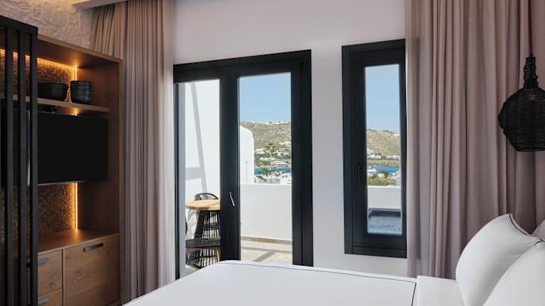 Alle Gästezimmer im Kalea Mykonos sind mit Klimaanlage, einem Sitzbereich, Flachbild-TV mit Satellitenkanälen, einem Safe sowie einem eigenen Badezimmer mit Dusche und kostenlosen Pflegeprodukten ausgestattet. Jedes Zimmer beinhaltet Bettwäsche und Handtücher.