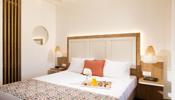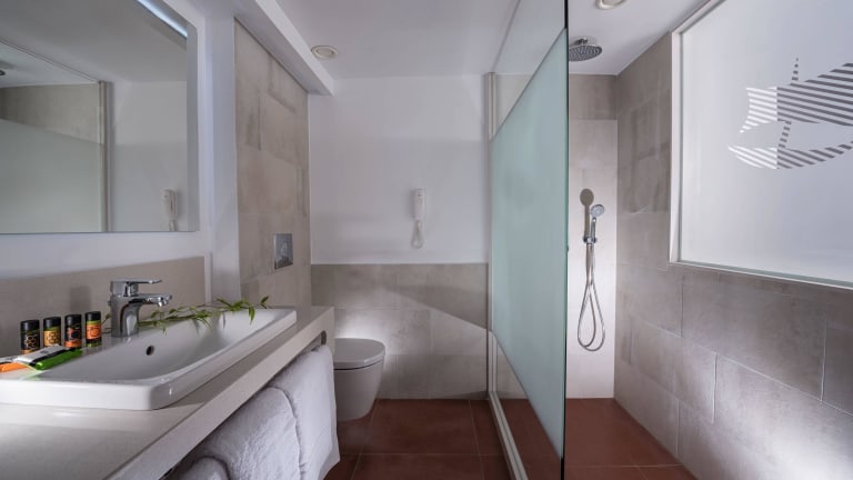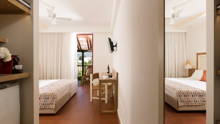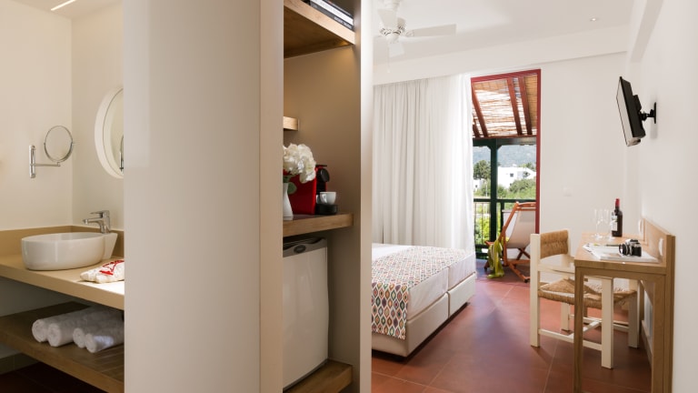 Die modern eingerichteten DoppelZimmer verfügen über zwei Einzelbetten, Dusche , Smart- TV, Telefon, Klimaanlage , Deckenventilator, Tee & Kaffee Zubereitungsmöglichkeiten , sowie einen Balkon oder Terrasse. Die Doppelzimmer Superior verfügen über zwei Einzelbetten, oder auf Anfrage Kingssize bed, Dusche , Smart- TV, Telefon, Klimaanlage , Deckenventilator, Pool/Strand Tuecher, Tee & Kaffee Zubereitungsmöglichkeiten , Nespresso machine (2 Kapseln/pro Tag Auffüllung), sowie einen Balkon oder Terrasse. Es ist kostenfreies, kabelloses Internet im ganzen Bereich vorhanden. *Die Gebühr ist von dem Gast NUR BAR zu zahlen, der das Zimmer benutzt hat, und wird nach dem Aufenthalt in der Unterkunft und vor der Abreise erhoben, indem eine "gesonderte Quittung - Quittung für die Klimaresistenzabgabe" ausgestellt wird.