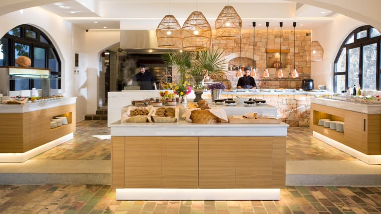 Das neu gestaltete Restaurant mit Aussenterrace operiert von: Fruehstuecks Buffet von 07.30-10.30 & Abendessen Buffet von 18.30-21.00 Von 13.00-17.00 eine Auswahl von kretischen, mediterranen Gerichte a la carte erhaeltlich. Regionalen Produkten gekocht mit emphasis in der kretischen Diätphilosophie. Hausgemacht Backwaren von unseren eigenen Bäckereien. Neben dem Buffet, gelegentlich, Show Cooking während Frühstück und Abendessen. Zudem Spezielle Themenabend 3mal im Monat ,June -September.