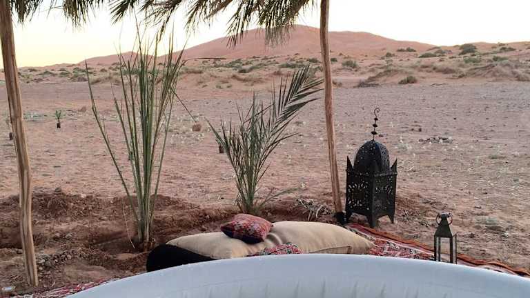 Das Kam Kam Dunes in Merzouga ist eine ideale Unterkunft für Reisende, die eine einzigartige Erfahrung in der Wüste suchen. Mit kostenfreien Privatparkplätzen und einem luxuriösen Zelt, das als Restaurant dient, bietet das Hotel eine komfortable Unterkunft und köstliche marokkanische Küche. Genießen Sie das tägliche Frühstück mit einer Auswahl an kontinentalen, vegetarischen und glutenfreien Speisen. Entspannen Sie auf der Terrasse oder im Garten und erkunden Sie die atemberaubende Umgebung. Der Flughafen Moulay Ali Cherif ist nur 123 km entfernt und ein kostenpflichtiger Flughafentransfer ist verfügbar.