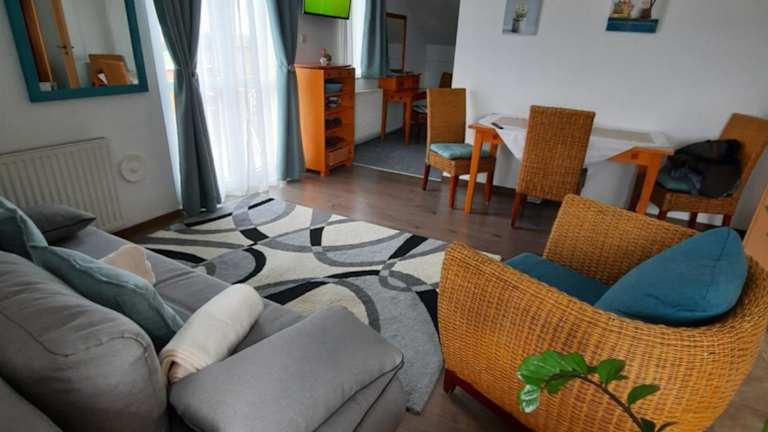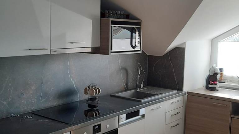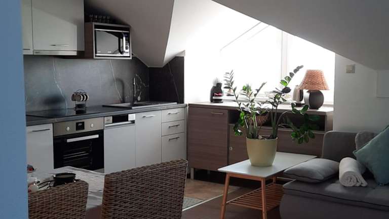 Die Ferienwohnung verfügt über ein Schlafzimmer, ein Wohnzimmer und eine voll ausgestattete Küche, die mit einem Kühlschrank und einer Kaffeemaschine ausgestattet ist. Es gibt ein Badezimmer mit Dusche und kostenlosen Pflegeprodukten. Handtücher und Bettwäsche werden bereitgestellt.