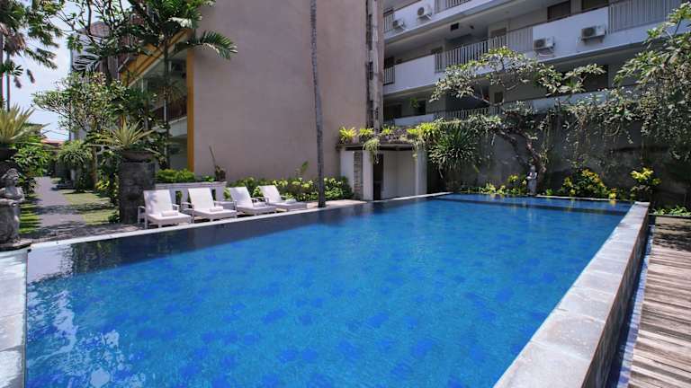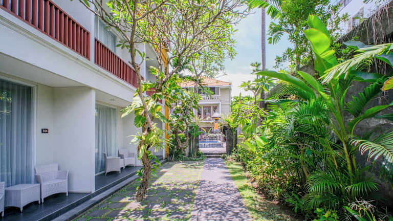 Das Transera Kamini Legian Hotel liegt in zentraler Lage in Kuta und bietet eine gute Anbindung an die Umgebung. Der Strand von Kuta ist nur 5 Fahrminuten entfernt, wo Sie die wunderschönen Sonnenuntergänge genießen können. In der Nähe gibt es auch weitere gastronomische Einrichtungen, die Sie nach einem kurzen 10-minütigen Spaziergang erreichen können.