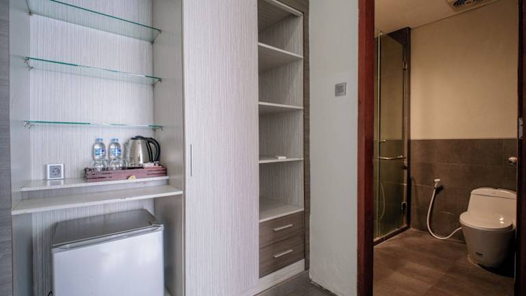 Das Transera Kamini Legian Hotel verfügt über 26 komfortable Zimmer, die einen entspannten Aufenthalt garantieren. Die Zimmer sind klimatisiert und verfügen über Annehmlichkeiten wie einen Flachbild-Sat-TV, einen Safe und einen Sitzbereich. Ein Kühlschrank mit Minibar, ein Wasserkocher sowie Tee- und Kaffeezubehör sind ebenfalls vorhanden. Das eigene Badezimmer ist mit einem Haartrockner, Hausschuhen und kostenfreien Pflegeprodukten ausgestattet.