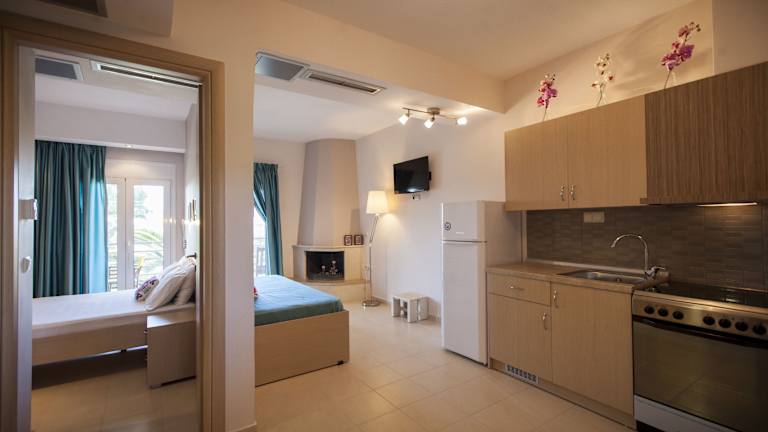 In unmittelbarer Nähe des Kanali Homes finden Sie eine große Auswahl an Restaurants, Strandbars und Cafés. Hier können Sie lokale Spezialitäten genießen und den Geschmack der griechischen Küche erleben. Selbstverständlich können Sie auch Ihre eigenen Mahlzeiten in der gut ausgestatteten Küche Ihres Apartments zubereiten.