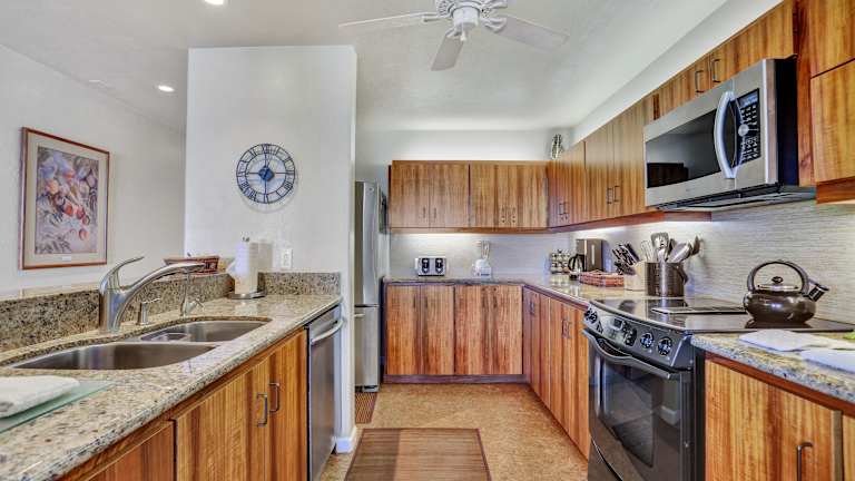 Die geräumigen Apartments im Kanaloa at Kona by Castle Resorts & Hotels verfügen über eine voll ausgestattete Küche, in der Sie Ihre eigenen Mahlzeiten zubereiten können. Jedes Apartment bietet zudem Kabel-TV, eine Waschmaschine, einen Wäschetrockner und einen Balkon mit Aussicht. Ein Bügeleisen/-brett, ein eigener Safe und ein Haartrockner sind ebenfalls vorhanden.