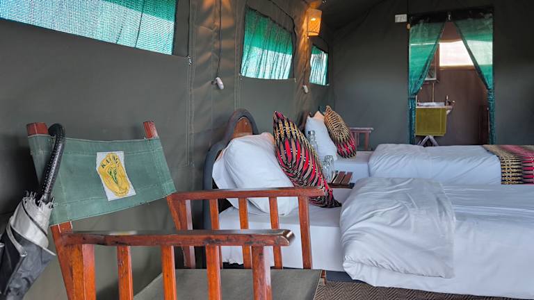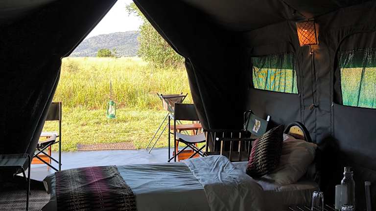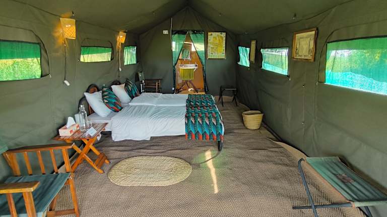 Die Zelte im Kananga Special Tented Camp sind gemütlich und komfortabel eingerichtet. Sie verfügen über Teppichboden, Nachttische und Gepäcknetze, um Ihren Aufenthalt so angenehm wie möglich zu gestalten. Das Bett ist mit hochwertiger Bettwäsche und einer traditionellen Massai-Decke ausgestattet, um Ihnen eine erholsame Nachtruhe zu bieten. Jedes Zelt verfügt zudem über eine Dusche im Freien und ein WC für Ihren Komfort. Solarbetriebene LED-Leselampen sorgen für eine angenehme Beleuchtung.