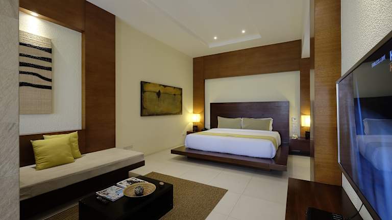 Jedes Zimmer im Kandaya Resort ist ein gemütlicher Rückzugsort mit einem Balkon oder einem Patio mit Garten- oder Meerblick. Die Zimmer verfügen über einen Sitzbereich, einen Flachbild-Kabel-TV und ein Sofa. Eine Minibar mit einer Nespresso-Kaffeemaschine und Teezubehör sowie ein Kleiderschrank mit einem Bügeleisen/-brett sind ebenfalls vorhanden. In Ihrem eigenen Bad finden Sie eine Dusche oder eine Badewanne vor. Handtücher, ein Haartrockner und kostenfreie Pflegeprodukte von Malin + Goetz liegen für Sie bereit.