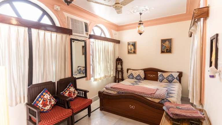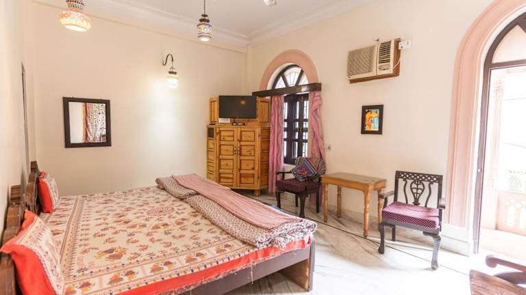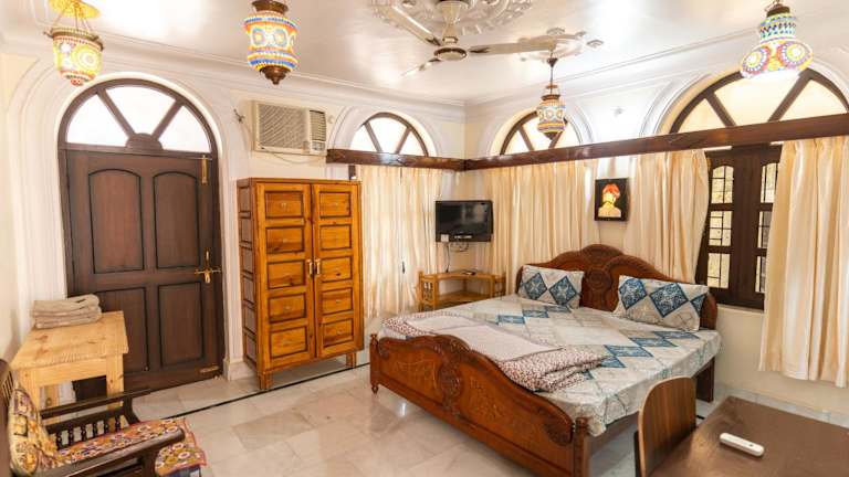 Die 20 Zimmer im Kanhaia Haveli sind gepflegt und komfortabel. Jedes Zimmer ist klimatisiert und bietet eine angenehme Atmosphäre für einen erholsamen Aufenthalt. Die Zimmer sind mit sauberer Bettwäsche und einem Schreibtisch ausgestattet. Die größeren Zimmer verfügen über einen separaten Sitzbereich und Kabel-TV. Die Badezimmer sind mit Warmwasserduschen ausgestattet.