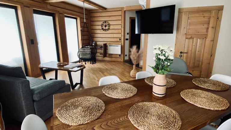Kanylosek Luksusowe Domki Drewniane ist eine Villa, die über einen Garten, eine Terrasse und einen Tennisplatz verfügt. Sie bietet kostenloses WLAN und einen Blick auf die Berge. Ein kostenloser Privatparkplatz ist ebenfalls vorhanden.