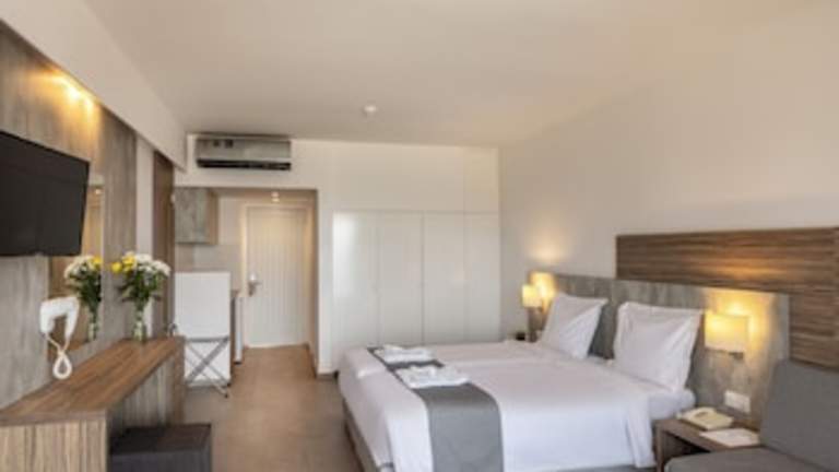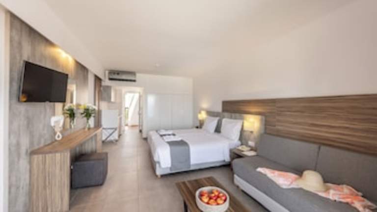 Die Gästezimmer im Kapetanios Aqua Resort sind mit Klimaanlage, Flachbild-TV mit Satellitenkanälen, Minibar, Wasserkocher sowie Badewanne und kostenlosen Pflegeprodukten ausgestattet. Zu den weiteren Annehmlichkeiten gehören ein Schreibtisch, ein Safe und ein Balkon. Mehrere Zimmer bieten Meerblick.