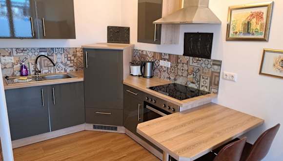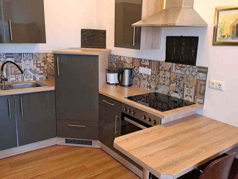 Die Zimmer bieten ein Wohnzimmer mit Fernseher und sind mit einer Küchenzeile ausgestattet.