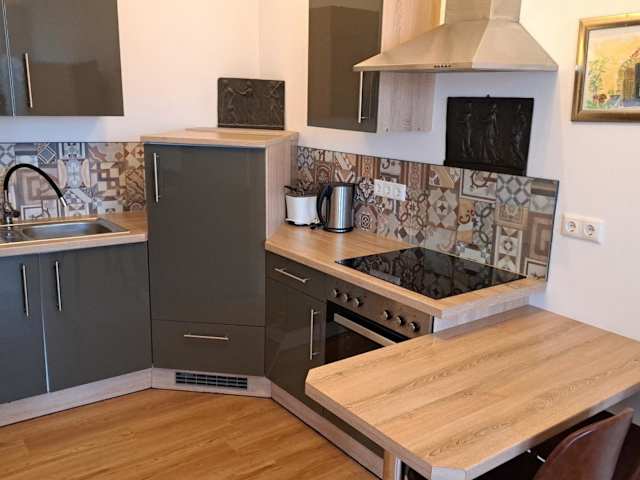 Die Unterkunft verfügt über eine Küchenzeile, die mit einem Kühlschrank, einem Ofen, einem Toaster, einer Kaffeemaschine und einem Wasserkocher eingerichtet ist.