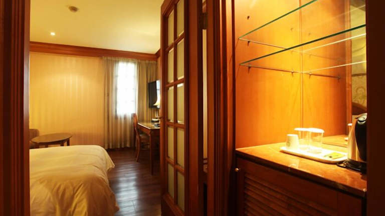 Die Zimmer sind klimatisiert und mit einem Doppelbett ausgestattet. Zu den Annehmlichkeiten gehören eine Minibar, eine Tee-/Kaffeemaschine sowie ein Direktwahltelefon und ein TV-Gerät mit Satelliten- und Kabelanschluss. Jedes Zimmer verfügt über ein Badezimmer mit einer Dusche und einer Badewanne sowie über einen Haartrockner. Es sind Familien- und Nichtraucherzimmer vorhanden.