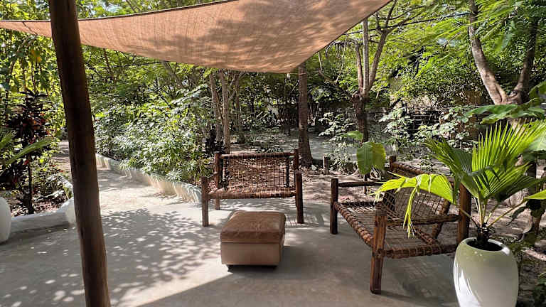 Die Gästezimmer in der Karanga Bungalows sind mit einer Veranda oder einem Patio ausgestattet, die einen Blick auf den Garten bieten. Jedes Zimmer verfügt über ein eigenes Badezimmer und Bettwäsche.