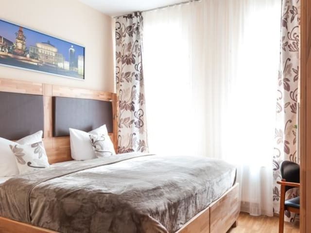 Die “Karli Apartment: Suite I” befindet sich in einem renovierten Gebäude aus dem 19. Jahrhundert im südlichen Zentrum Leipzigs, auf der legendären Karl-Liebknecht-Straße. Umgeben von Cafés, Bars und Restaurants haben Sie eine erstklassige Auswahl an kulinarischen Köstlichkeiten aus verschiedenen Cuisinen und können an jeder Ecke eines der Cafés für sich entdecken. Im Haus erwarten Sie außerdem zwei Restaurants mit deutscher Küche und asiatischen Spezialitäten. Für unsere Gäste gibt es 10% Willkommensrabatt auf alle Speisen! Warme Farben, Natursteinböden und höchster Komfort sorgen für Ihr Wohlbefinden und einen angenehmen Aufenthalt. Die geräumige “Suite I - Deluxe” bietet Ihnen einen Balkon, Sitzbereich mit Flachbild-TV, Lounge und Schreibtisch, Kleiderschrank, ein separates Bad mit Dusch- und Wannenkombination sowie eine voll ausgestattete Küche mit Kühlschrank, Kaffeemaschine, Wasserkocher und Ceranfeld. Der integrierte Küchenbereich ermöglicht Ihnen eine Selbstversorgung wie im eigenen Heim. In allen unseren Suiten stehen Ihnen kostenloses WLAN, Kaffee- und Teezubehör sowie Haartrockner, Handtüchern und Badkosmetik zur Verfügung. Der Schlafbereich für zwei Personen ist separat vom Wohnraum getrennt. Es gibt außerdem die Möglichkeit eine 3. Person unterzubringen. Unsere Suiten liegen nur wenige Minuten entfernt von der Leipziger Innenstadt. Dank unserer hervorragenden Lage sind sämtliche öffentlichen Verkehrsmittel schnell erreichbar. Straßenbahnhaltestellen Südplatz und Karl-Liebknecht/Kurt-Eisner-Straße sind gleich um die Ecke. Der Leipziger Hauptbahnhof ist nur 2,5 km entfernt. Die Altstadt ist in nur 500m entfernt und lädt zum Bummeln auf unserem historischem Naschmarkt ein. Den Leipziger Zoo erreichen Sie in 10 Fahrminuten. Das Alte Rathaus und der berühmte Auerbachs Keller sind nur wenige Minuten von unseren Suiten entfernt und die Messe-Leipzig erreichen Sie innerhalb von 15 Minuten mit dem Auto oder mit der Regionalbahn durch die exzellente Verkehrsanbindung. Ihr Fahrzeug können Sie auf einem öffentlichen Parkplatz kostenfrei abstellen. Kostenloses WLAN Kostenloses Kaffee- und Teezubehör Kostenlose Parkplätze vorm Haus Balkon Flachbild-TV Voll ausgestattete Küche Bad mit Dusch- und Wannenkombination Sitzbereich mit Lounge und Schreibtisch Kleiderschrank Haartrockner, Handtüchern und Badkosmetik stehen zur Verfügung Haltestelle direkt vorm Haus Zentrum innerhalb Minuten zu Fuß erreichbar Umzingelt von Bars, Restaurants, Cafés und Geschäften 10% Rabatt auf alle Speisen der Restaurants in unserem Haus