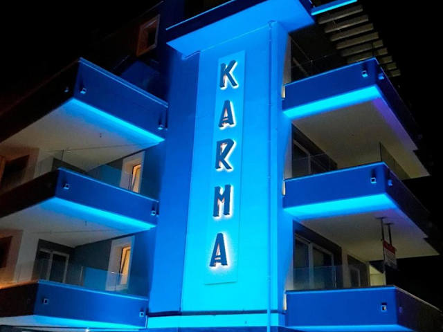 Die Unterkünfte im Karma Resort sind modern und komfortabel eingerichtet. Jedes Zimmer verfügt über einen eigenen Balkon mit Blick auf das Meer. Ein gemütlicher Sitzbereich und ein Flachbild-TV sorgen für Entspannung. Die voll ausgestattete Küche mit Kühlschrank, Geschirrspüler, Backofen, Kochfeld und Kaffeemaschine bietet Ihnen die Möglichkeit, Ihre eigenen Mahlzeiten zuzubereiten. Das private Badezimmer ist mit einem Bidet und kostenfreien Pflegeprodukten ausgestattet.