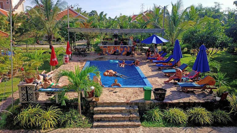Erleben Sie einen entspannten Aufenthalt im Karma Traders Kampot in Kampot. Das Hotel bietet einen Außenpool, einen Garten und eine Terrasse, umgeben von einer malerischen Umgebung. Genießen Sie köstliche Speisen im hoteleigenen Restaurant und nehmen Sie an unterhaltsamen Aktivitäten wie Tischtennis und Darts teil. Das freundliche Personal sorgt dafür, dass Sie sich rundum wohlfühlen.