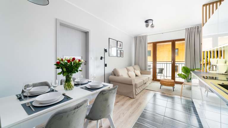 Die Wohneinheiten sind mit einer Küchenzeile ausgestattet, die über einen Kühlschrank, einen Geschirrspüler und eine Herdplatte verfügt. Verpflegungsmöglichkeiten sind im bereitgestellten Text nicht erwähnt.