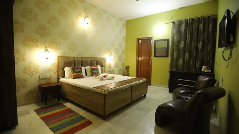 Die Zimmer im Karta-Purakh an Ayurvedic Stay sind komfortabel und gut ausgestattet. Jedes Zimmer verfügt über einen gemütlichen Sitzbereich, eine Küchenzeile mit einem Kühlschrank und einen Flachbild-Sat-TV. Handtücher und Bettwäsche werden gestellt, um den Aufenthalt der Gäste so angenehm wie möglich zu gestalten.