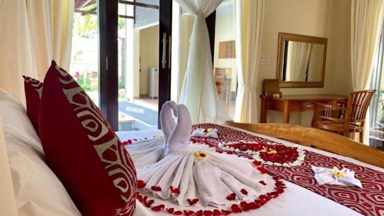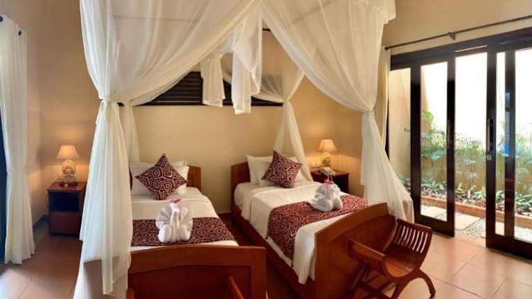 Die Kartika Dahayu Private Pool Villas befinden sich weniger als 1 km entfernt vom beeindruckenden Tegenungan Wasserfall. Die Lage ist ideal für Naturliebhaber und bietet die Möglichkeit, die Schönheit der Umgebung zu erkunden. In der Nähe finden Sie auch den historischen Tempel Goa Gajah und den bekannten Affenwald von Ubud. Der internationale Flughafen Denpasar ist etwa 30 km entfernt und kann gegen Gebühr mit dem Flughafentransfer der Unterkunft erreicht werden.