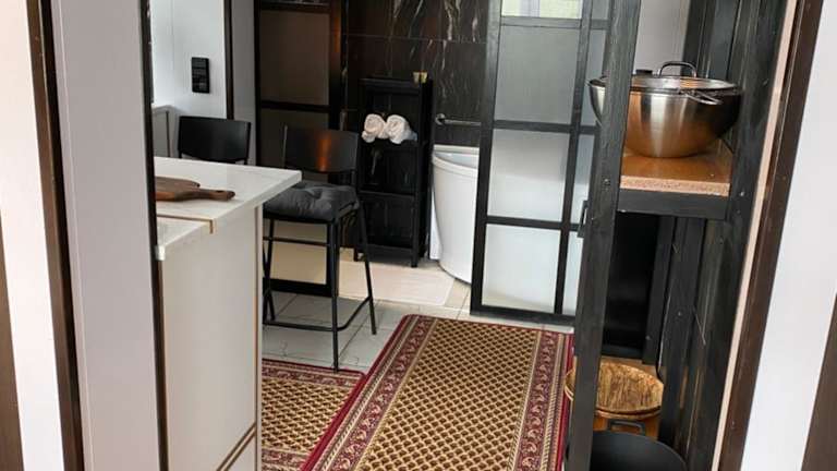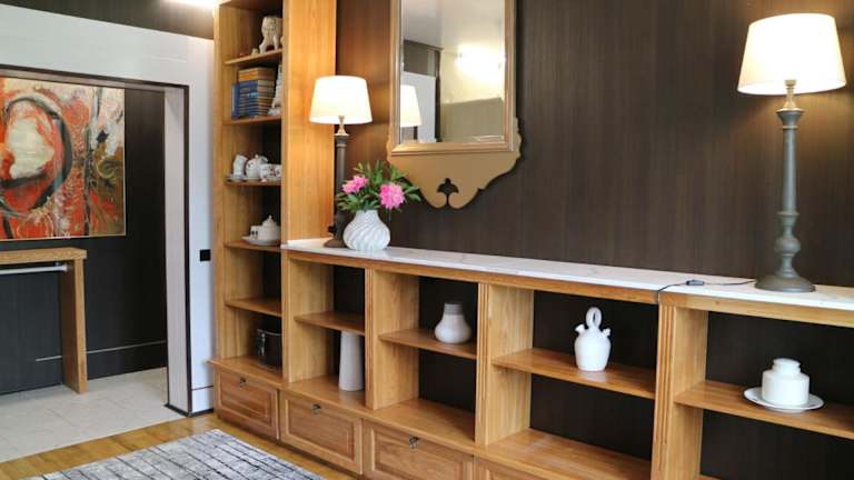 Die Ferienwohnung besteht aus einem Schlafzimmer, einem Wohnzimmer und einer voll ausgestatteten Küche, die über einen Kühlschrank und eine Kaffeemaschine verfügt. Des Weiteren stehen ein Badezimmer mit Bidet und Dusche zur Verfügung. Handtücher und Bettwäsche werden bereitgestellt.