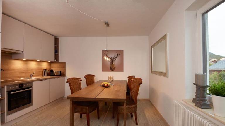 Alle Wohneinheiten sind ausgestattet mit einem Kühlschrank, Geschirrspüler, Kaffeemaschine, Ofen und Wasserkocher. Einige Apartments verfügen über eine Terrasse mit Bergblick und eine voll ausgestattete Küchenzeile. Ein Gemeinschaftsbad mit Badewanne ist ebenfalls vorhanden.