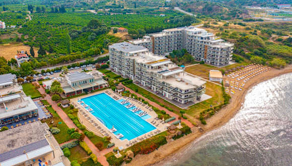 Hotel Karya Family Resort Ankommen und wohlfühlen! Entspannen Sie sich an der traumhaften Poolanlage und genießen Sie die herrliche Aussicht auf das Meer. Urlaubsoase pur! Ort Türkei, Izmir, Kusadasi-Özdere Lage Direkt am hoteleig. Sand-/Kiesstrand. Das Ortszentrum Özdere mit zahlreichen Einkaufs-und Unterhaltungsmöglichkeiten ist ca. 4 km entfernt. Ausstattung Großzügige Hotelanlage mit Swimmingpoollandschaft, 5 Wasserrutschen, Sonnenterrasse, Liegen, Schirme und Badetücher (am Strand/Pool inkl.). Empfangshalle mit Rezeption, WLAN (öffentl. Bereichen inkl.), 3 À-la-carte-Restaurants, Minimarkt, Friseur, Geschäfte. Landeskat.: 4 St., 222 Zi., 7 Etg., 2 Lifte. Wohnen Doppelzimmer (DZM, 21 qm), Klimaanl., Minibar, TV, Tel., Safe. Dusche, WC, Föhn. Balkon mit Meerblick, Landblick (DA) oder seitl. Meerblick (DSB). Max. 2E+1K, wahlw. zur Alleinnutzung (EZM, ESB) Großes Doppelzimmer (DZL, ca. 27 qm), im Erdg., zusätzliches Hochbett, Klimanl., Minibar, TV, Tel., Safe. Dusche, WC, Föhn. Terrasse mit Gartenblick. Max. 3E+1K Familienzimmer (FZ, ca. 44 qm), separates Schlafzimmer, Klimaanlage, Minibar, TV, Telefon, Safe. Dusche, WC, Föhn. Balkon mit Meerblick. Max. 5E Essen & Trinken all inclusive: Frühstücksbuffet, mittags und abends kaltes/warmes Buffet, wahlw. 1x wöchentl. in einem der 3 À-la-carte-Restaurants (türkische Küche, Fisch und italienisch) Langschläferfrühstück bis 11:00 Uhr Tagsüber Snacks, nachmittags Kuchen/Gebäck und Eis Alkoholfr. und ausgew. nat. alkohol. Getränke von 10:00-02:00 Uhr Wellness & Fitness Wellnessbereich Türkisches Bad, Sauna Hallenbad Wellnessmassagen (gegen Gebühr) Fitnesscenter Sport Multifunktionsplatz Basketball, Minigolf, Tischtennis Unterhaltung Animation, Beachvolleyball, Wassergymnastik, Wassersport (lokaler Anbieter, gegen Gebühr), Kanu- und Tretbootverleih