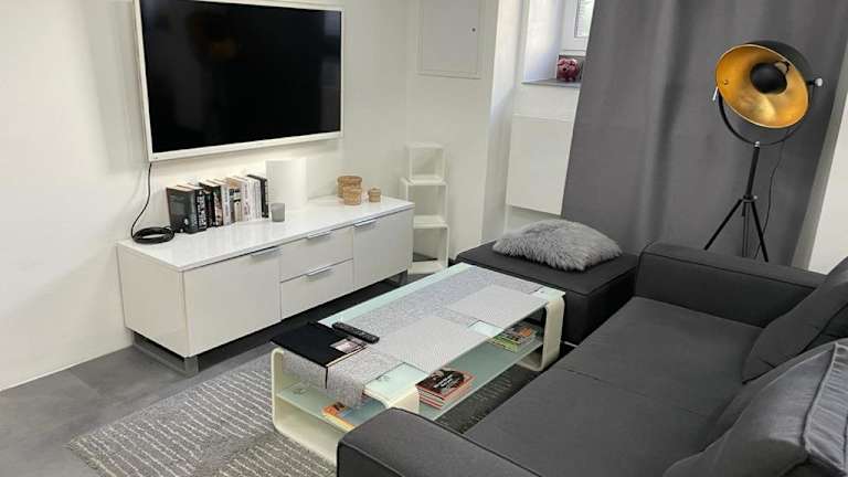 Die Ferienwohnung verfügt über zwei Schlafzimmer sowie ein Wohnzimmer mit einem Flachbild-TV mit Kabelkanälen. Die voll ausgestattete Küche ist mit einem Kühlschrank und einem Ofen eingerichtet. Es gibt zwei Badezimmer, die mit einer Dusche ausgestattet sind. Handtücher und Bettwäsche werden bereitgestellt. Die Unterkunft ist rauchfrei und bietet Annehmlichkeiten wie Heizung und kostenlosen WLAN-Zugang.