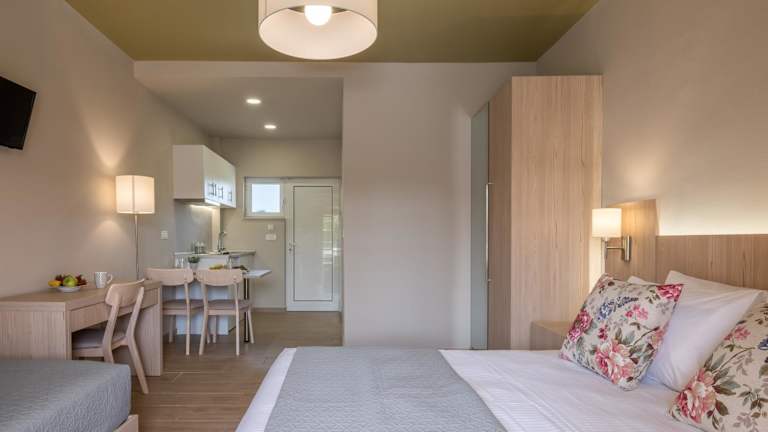 Die Katerina Studios bieten eine ideale Unterkunft für Selbstversorger, nur wenige Gehminuten vom wunderschönen Strand Tsilivi in Zakynthos entfernt. Die Studios sind geräumig und verfügen über einen möblierten Balkon mit Blick auf den gepflegten Garten. Entspannen Sie sich auf den Liegestühlen oder lassen Sie Ihre Kinder auf dem Spielplatz spielen. Genießen Sie auch den Zugang zu den Pools in den benachbarten Unterkünften. Die zentrale Lage ermöglicht es Ihnen, die Geschäfte und Bars von Tsilivi in nur wenigen Minuten zu erreichen. WLAN und Parkplätze stehen Ihnen kostenfrei zur Verfügung.