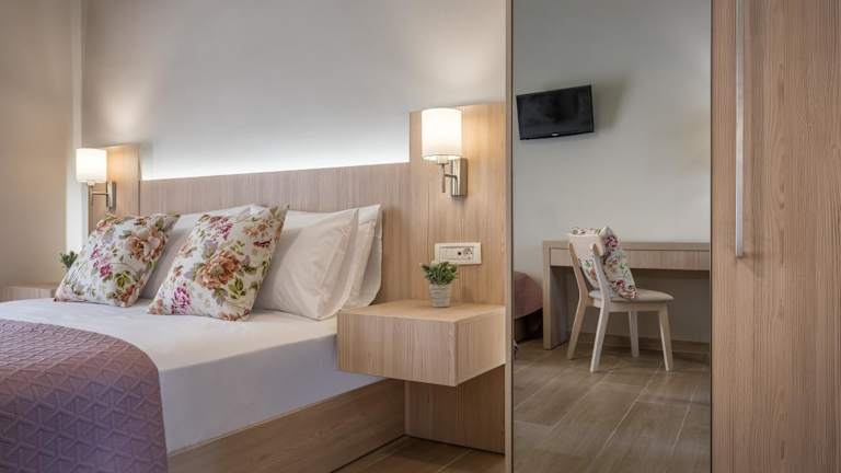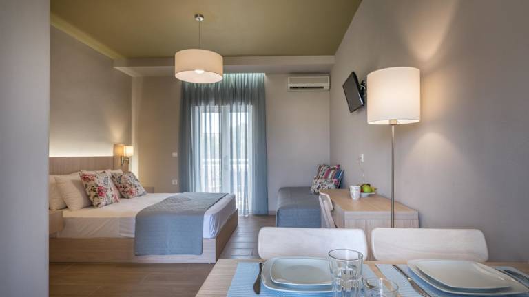 Die klimatisierten Studios der Katerina Studios sind komfortabel und bieten alles, was Sie für einen angenehmen Aufenthalt benötigen. Jedes Studio verfügt über einen TV und eine Küchenzeile mit Kühlschrank und Mikrowelle. Der möblierte Balkon bietet einen schönen Blick auf den Garten, wo Sie sich auf den Liegestühlen entspannen können. Es gibt auch einen Essbereich, so dass Sie Ihre Mahlzeiten bequem im Studio einnehmen können.