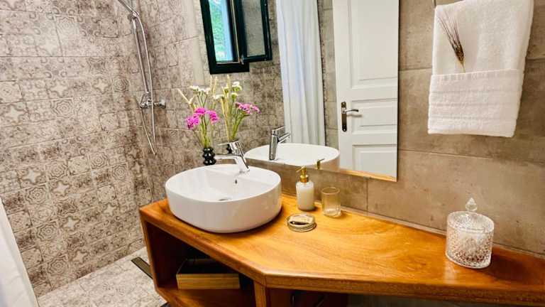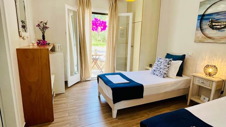 Das Hotel Katerina befindet sich in Panormos Skopelos, nur 300 m vom Strand entfernt. Die Umgebung ist von üppigem Grün umgeben und bietet einen erholsamen Rückzugsort für Gäste, die die Natur genießen möchten. In der Nähe des Hotels finden Sie Geschäfte und Restaurants, die zu Fuß in nur 3 Gehminuten erreichbar sind. Die Stadt Skopelos ist ebenfalls leicht zu erreichen und liegt etwa 14 km entfernt. Die Strände von Milia und Kastani sind ebenfalls in der Nähe und bieten wunderschöne Küstenlandschaften zum Entspannen und Sonnenbaden.