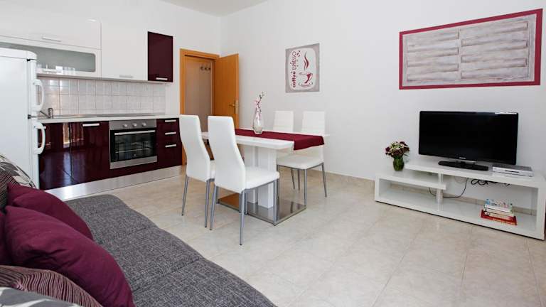 Die Katica Apartments bieten Selbstversorgungsmöglichkeiten, da jede Einheit eine voll ausgestattete Küche hat. Dies ermöglicht es den Gästen, ihre eigenen Mahlzeiten zuzubereiten und flexibel zu bleiben. Es gibt auch verschiedene Restaurants und Cafés in der Umgebung, in denen Sie lokale Spezialitäten probieren können.