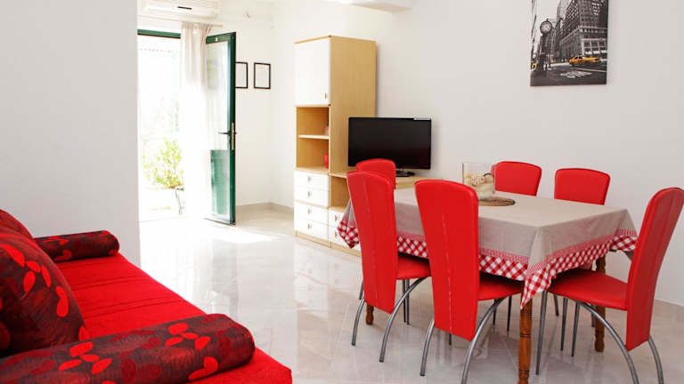 Die Katica Apartments bieten komfortable Unterkünfte mit kostenfreiem WLAN und Klimaanlage. Die Apartments verfügen über eine Terrasse, auf der Sie die frische Luft und die schöne Umgebung genießen können. Der Innenbereich ist gemütlich gestaltet und verfügt über einen Sitzbereich sowie einen Flachbild-Sat-TV. Die voll ausgestattete Küche bietet alle Annehmlichkeiten, die Sie benötigen, einschließlich eines Kühlschranks und eines Kochfelds. Das private Badezimmer ist mit einer Badewanne oder Dusche ausgestattet.