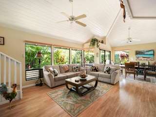 Das Kauai Vacation Home befindet sich in Princeville, Kauai, auf Hawaii, etwa 10 Gehminuten vom Sea Lodge Beach entfernt. In der Nähe liegen auch das Hanalei National Wildlife Refuge (5 km) und der Flughafen Lihue (46 km).