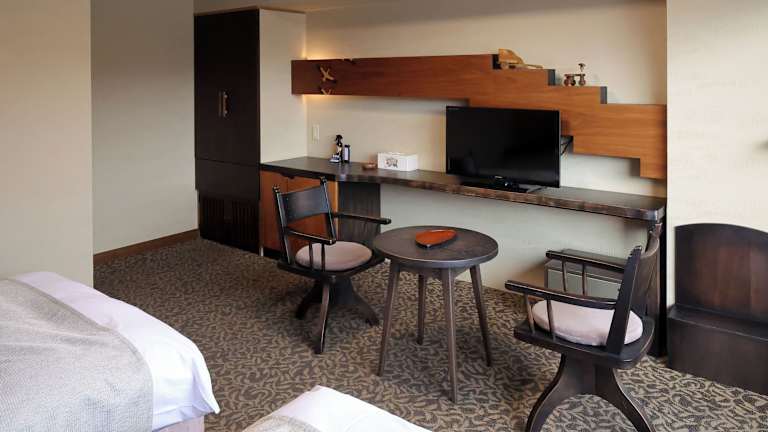 Das Hotel verfügt über 39 Zimmer, die mit einem Aufzug erreichbar sind. Jedes Zimmer ist im traditionell japanischen Stil eingerichtet und bietet seinen Gästen eine Klimaanlage, einen Balkon oder eine Terrasse sowie kostenpflichtige Klimaanlage und Zimmerservice. Zur Ausstattung gehören auch ein Safe, ein Kühlschrank, ein Telefon und kostenfreies WLAN. Die Badezimmer verfügen über ein Bidet und kostenlose Kosmetikartikel.