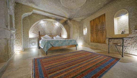 Located in Goreme, the heart of Cappadocia, our boutique hotel offers you the pleasure of watching the sunrise and hot air balloons with its honeymoon suite, natural cave and stone rooms, and magnificent terrace view. In our hotel, which is only a few minutes' walking distance from the historical bazaar of Göreme, you can also get information from us so that you can explore this unique region with Cappadocia tours and enjoy the region with various activities. On our terrace with a unique view of Goreme; We are happy to turn these happy days of our dear guests into a fairy tale memory with the organizations such as promises, engagement and marriage proposals.
