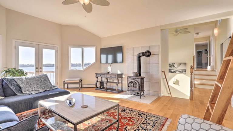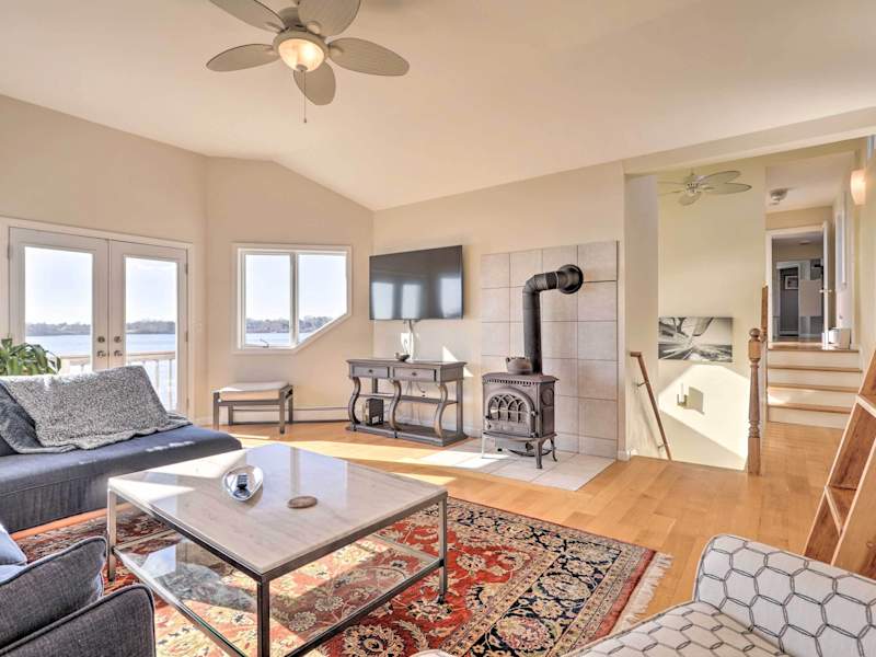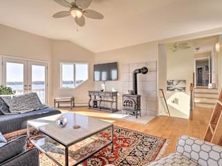 Das Home on Greenhill Pond with Panoramic Views and 3 Decks befindet sich in South Kingstown auf Rhode Island. Von hier aus haben Sie einen atemberaubenden Blick auf den Greenhill Pond und können die Ruhe und Schönheit der Umgebung genießen. In der Nähe finden Sie auch verschiedene Attraktionen wie die Towers in Narragansett und die International Tennis Hall of Fame. Der Block Island State Airport ist der nächstgelegene Flughafen und nur 49 km entfernt.