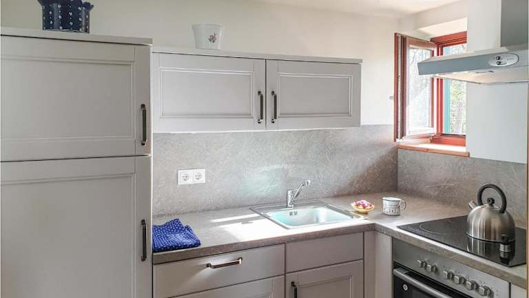 Das Ferienhaus bietet insgesamt 3 Schlafzimmer und ein Wohnzimmer. Die Küche ist komplett ausgestattet, was den Gästen die Möglichkeit bietet, selbst zu kochen.