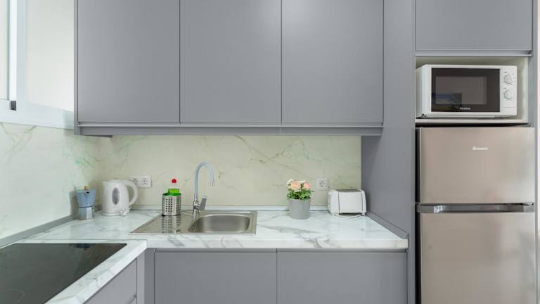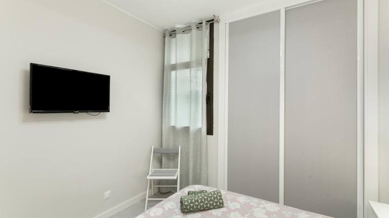 Die Ferienwohnung umfasst zwei Schlafzimmer und ein Wohnzimmer. Die voll ausgestattete Küche beinhaltet einen Kühlschrank und eine Kaffeemaschine. Zur Ausstattung des Bades gehört eine Dusche sowie kostenlose Pflegeprodukte. Handtücher und Bettwäsche werden bereitgestellt. Die Ferienwohnung ist klimatisiert.