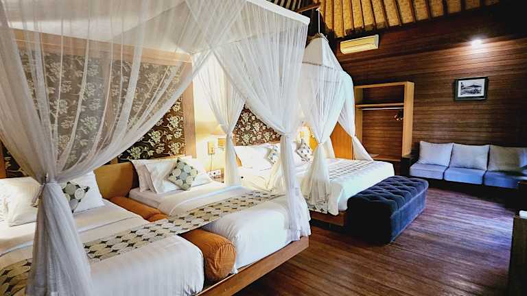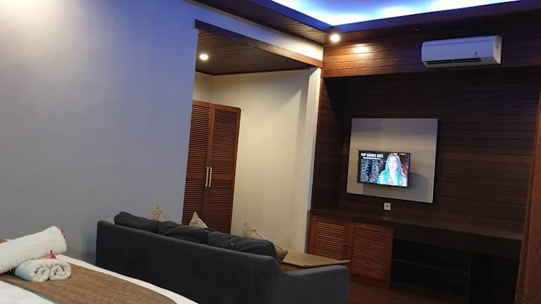 Die Zimmer im Hotel Kencana Garden sind einfach eingerichtet, aber bieten dennoch alle modernen Annehmlichkeiten, die Sie für einen angenehmen Aufenthalt benötigen. Jedes Zimmer ist klimatisiert und verfügt über einen Flachbild-TV, einen Kühlschrank, eine Minibar sowie einen Kleiderschrank. Das Parkett verleiht den Zimmern eine warme Atmosphäre und die Terrasse lädt zum Entspannen ein. Das eigene Bad ist mit einer Dusche ausgestattet und Handtücher werden Ihnen zur Verfügung gestellt.