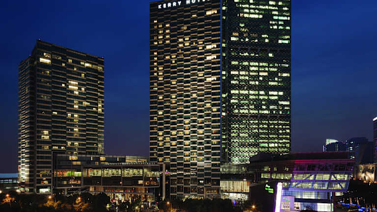 Das Kerry Hotel Pudong in Shanghai bietet eine erstklassige Lage in der Nähe des New International Expo Centre und der U-Bahn-Station Huamu Road (Linie 7). Es ist auch mit dem Kerry Parkside verbunden, wo Sie eine Vielzahl von Geschäften und Restaurants finden. Das Hotel liegt nur 10 Fahrminuten vom Technologiepark Zhangjiang und 25 Fahrminuten von der Freihandelszone Waigaoqiao entfernt. Der Freizeitpark Disney Resort Shanghai ist mit dem Auto oder dem Shuttlebus des Hotels in nur 17 Fahrminuten erreichbar. Vom Hotel aus gelangen Sie in etwa 30 Minuten zum Bund. Der internationale Flughafen Shanghai Pudong ist vom Hotel aus leicht mit dem Shuttlebus zum Bahnhof Longyang Road Maglev und dann mit der Magnetschwebebahn in nur 15 Minuten erreichbar.